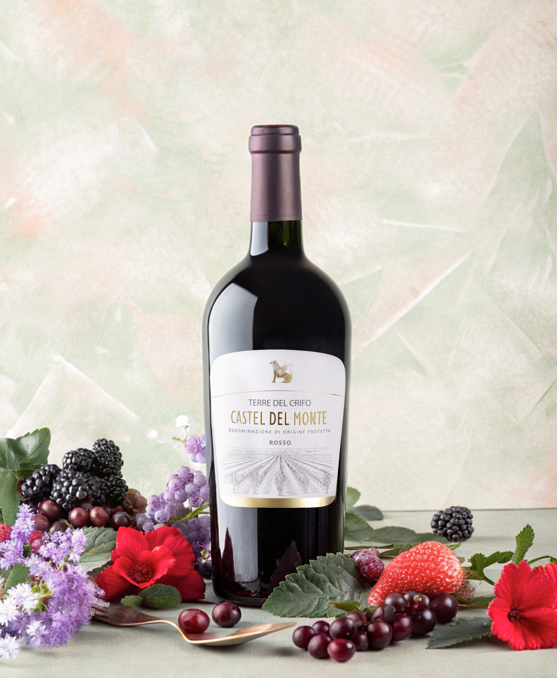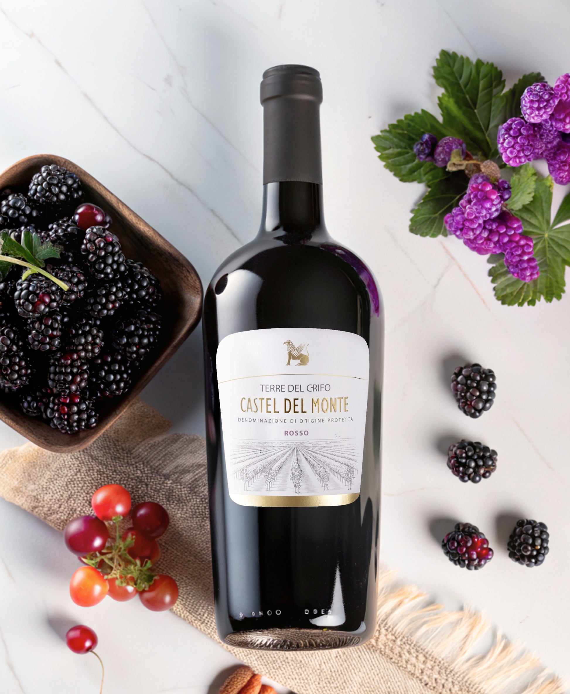 A balanced and velvety Castel del Monte red blend (Nero di Troia and others) with intense aromas of blackberry, plum, and a hint of violet.
